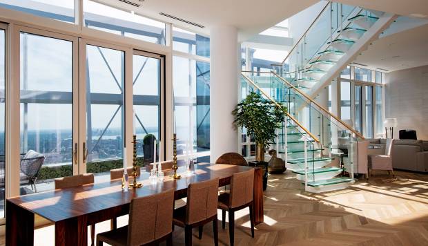 - Наиболее высокий расположен в центре Манхеттена. Его приобрел шейх из Саудовской Аравии за 87,7 млн. $. Площадь занимает 767 кв. м, высота окон – 3 м, а находится он на 66 этаже.