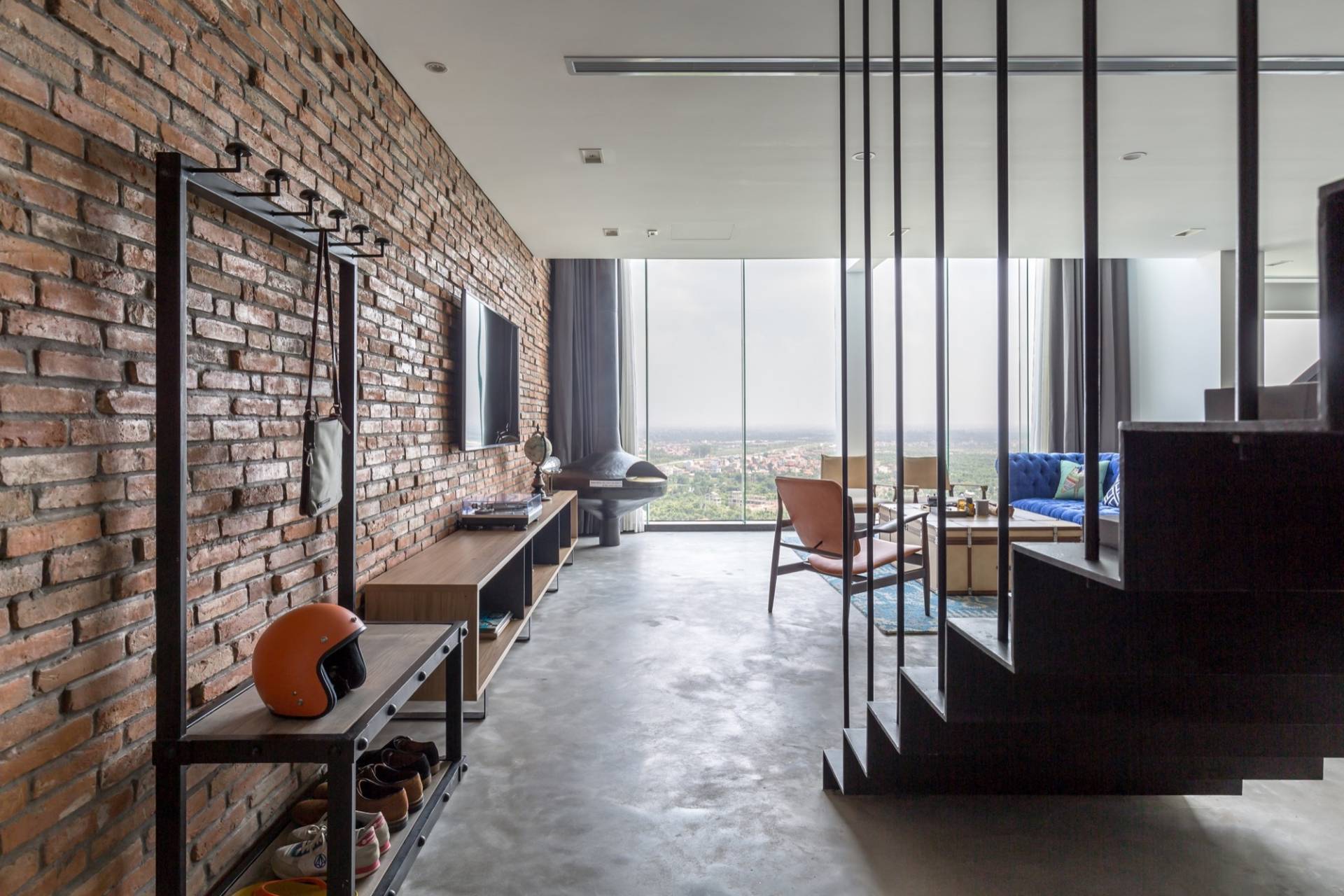 Интерьерный лофт считается родным стилем для пентхаусов. Создайте кирпичные стены, заводские железные лестницы, лампы с металлическими плафонами, трубы, элементы вентиляционной системы, балки на потолке. Окна большие и просторные. Тюль и шторы не используют, максимум – жалюзи.
